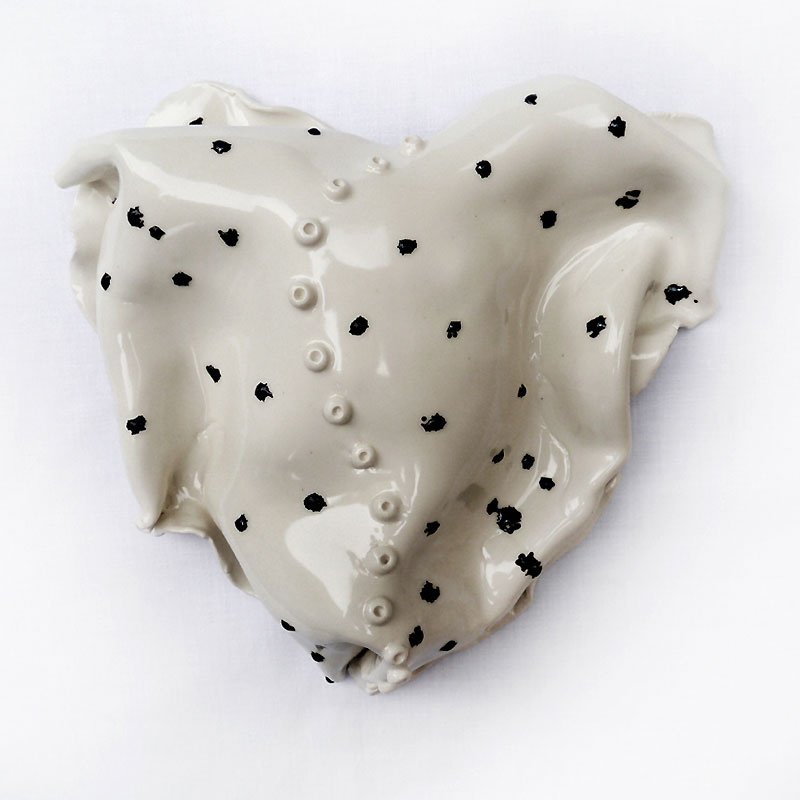 Porcelaine blanche émaillée avec gouttes de verre noir.