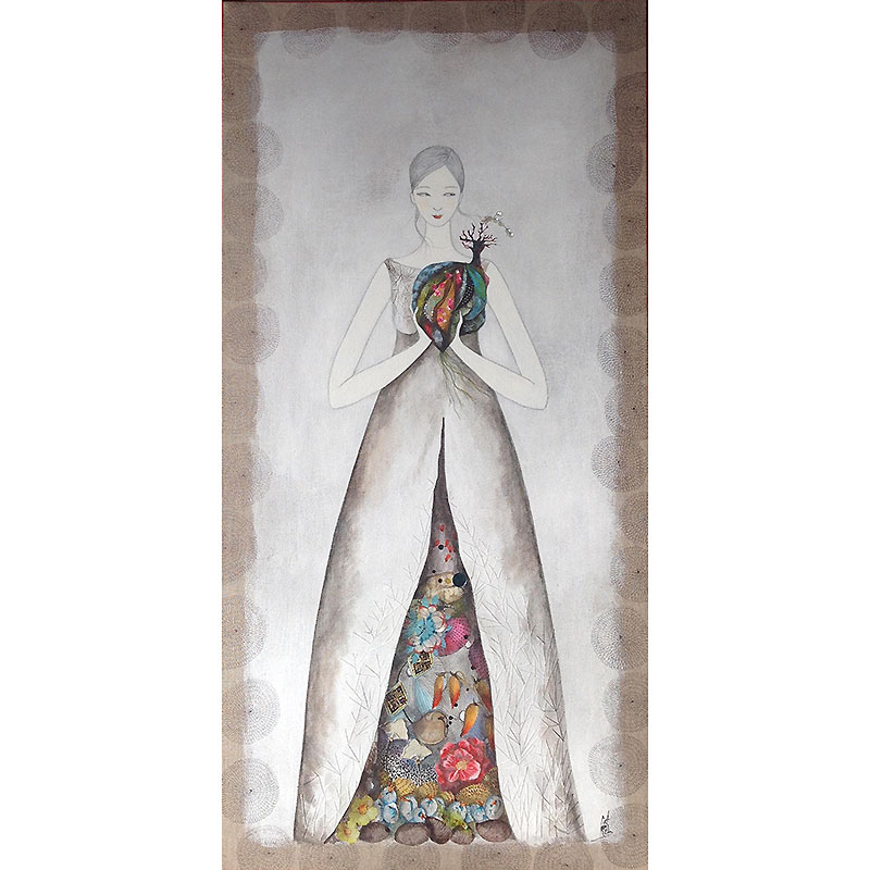 Technique mixte sur toile de lin naturelle