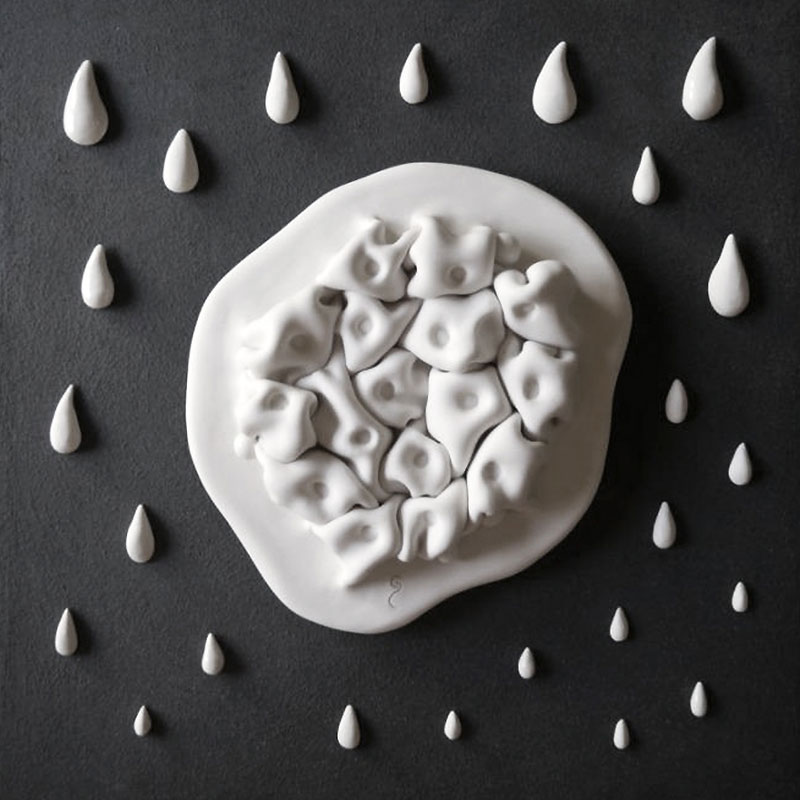 Bas relief, décoration murale porcelaine blanche, émail.