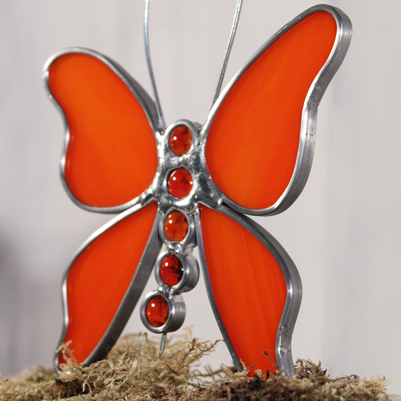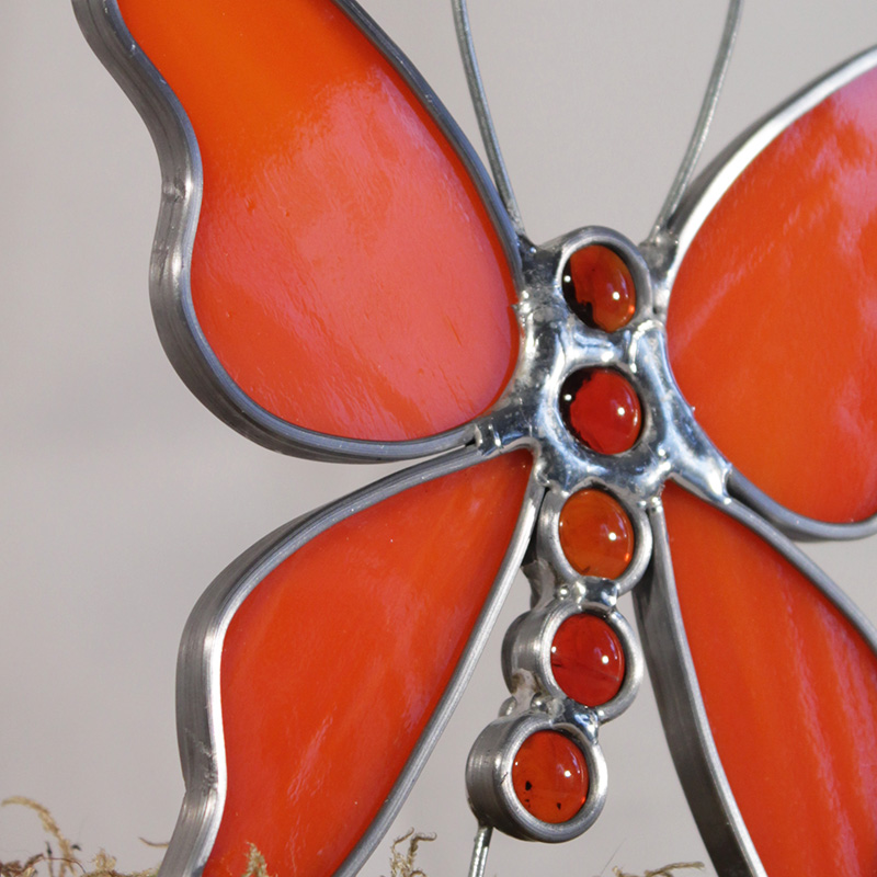 Cabochons orange foncé et orange clair ailes en verre opaque orange