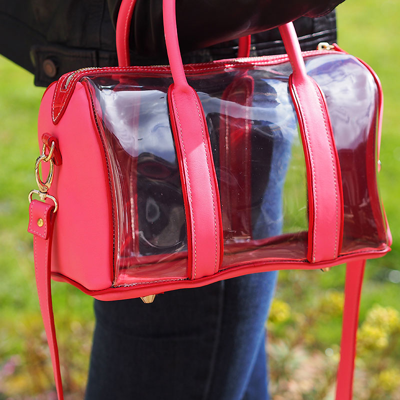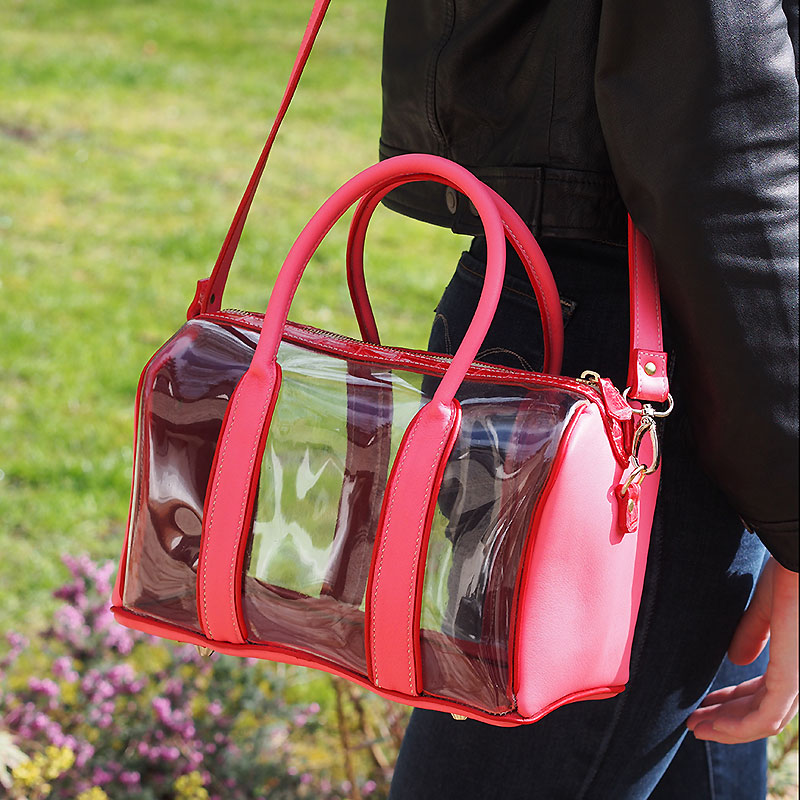 Doublure, pour les parties non transparentes, en cuir veau rouge.